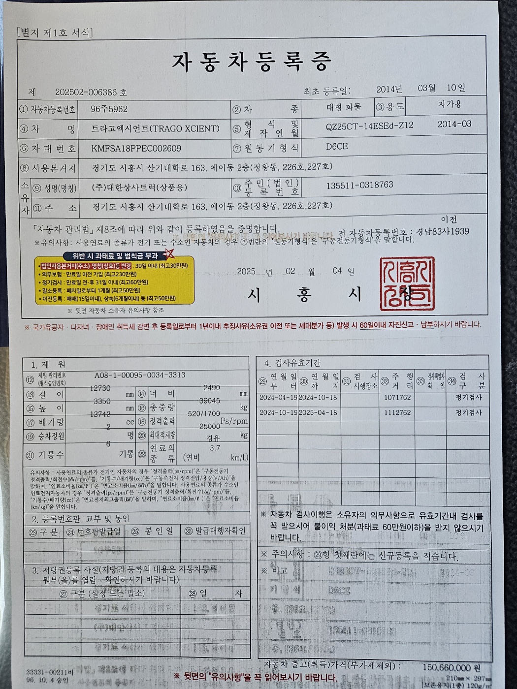 ■ 차량번호 : 96주5962
